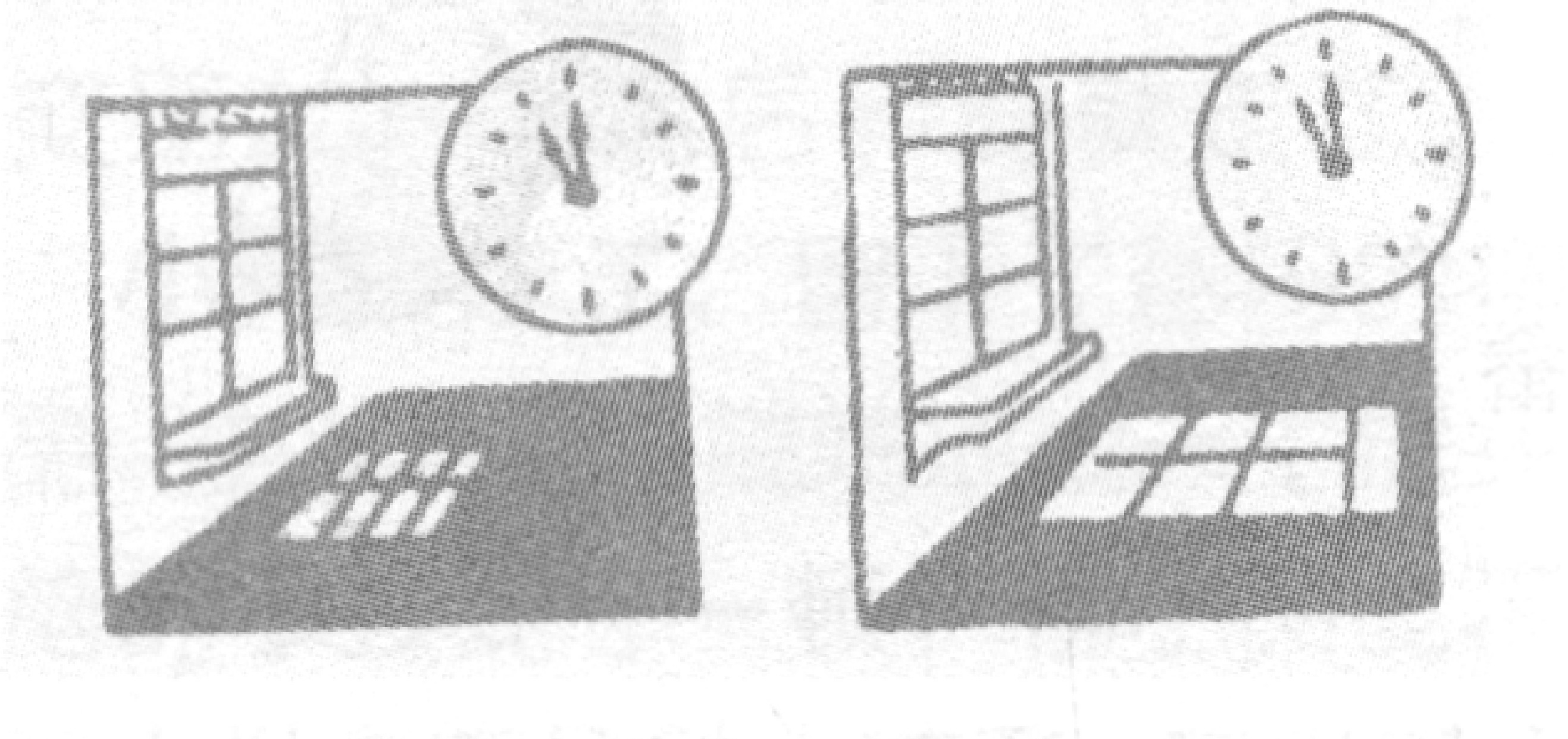 7.左图是夏天,右图是冬天,因为冬天时太阳处于地球的远日点,太阳高度角比较小,所以同一时间的影子会比较长。