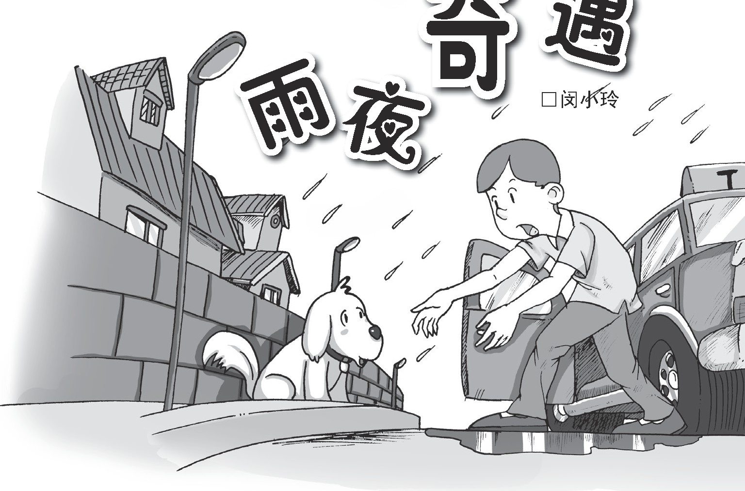 昨天晚上快11点时,忽然下起了大雨。我呢,在大街小巷里苦苦寻找顾客的时候,看到路边的亭子下站着一条小狗。