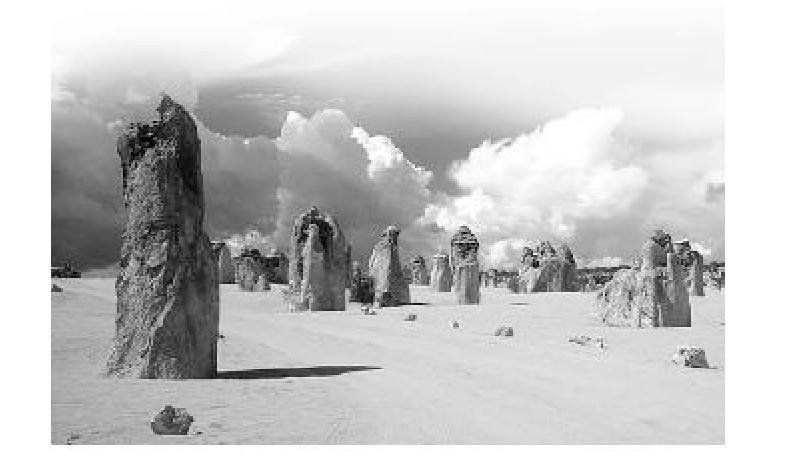 “博士你看,那幅照片好凄凉啊,沙漠里全是石头,那石头是干什么用的,是土著民族用来祭祀的吗?”小路问约克博士。