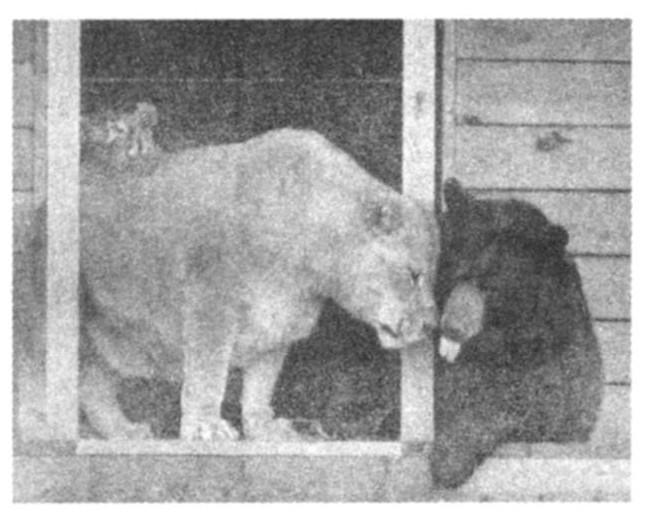 老虎谢尔、狮子里奥以及熊巴尔洛是警方在一次缉毒行动中解救的。自从它们获救被送到“诺亚方舟”动物救助中心后,一直被放在一起,到现在已经8年了。它们看起来相处得很融洽。