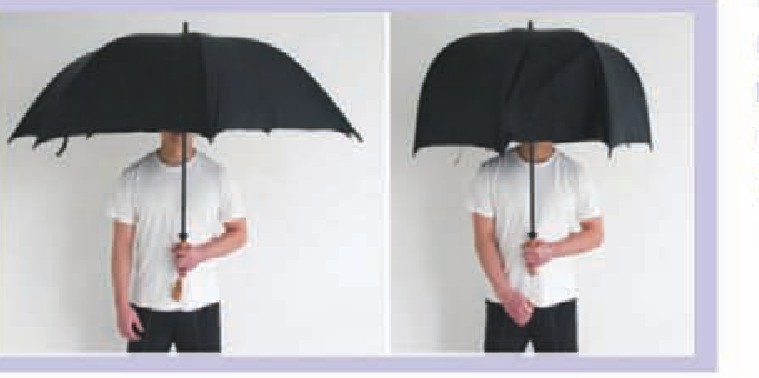 礼貌伞的设计目的是避免碰到他人。使用者通过拉一个手柄,随时都能调整伞的形状,以便保护自己避开狂风或者避免撞到其他人。