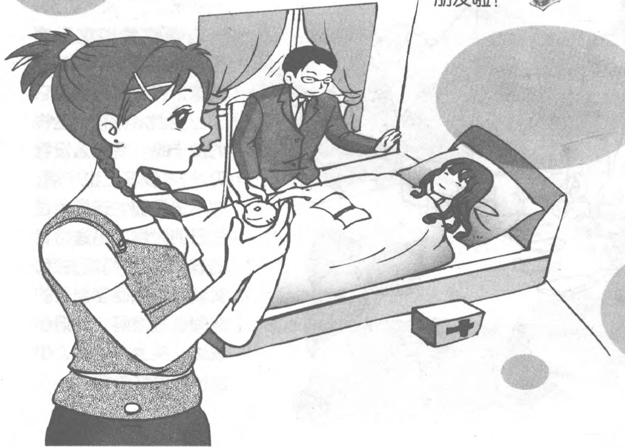 我们给它吃了药丸,小绒球又变回原来的样子了。“小绒球,我可想你了。”我高兴地抱着它,亲了又亲。可是,小绒球好像一点儿也不高兴,只是叫着:“哔,哔哔……” “它好像要带我们去看什么东西。”我们顺着它的触角指的方向走去,走到一座木房子旁边。然后,我们隐身进入房子,来到一个小姑娘的床前,看样子她病得很重。爸爸给小姑娘检查了一下:“人类无法治好她的病,可是我们能做到。”小绒球听完,高兴得跳起来了。我说:“爸爸,看来小绒球非常喜欢她,您就赶快治好她吧! ”爸爸给小姑娘注射了一种药剂,然后说:“好了,我们应该走了。”