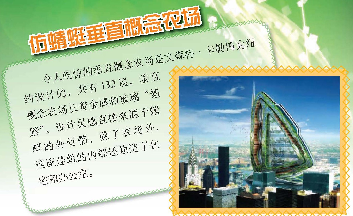 我们的身边日夜都陪伴着大量昆虫和蜘蛛纲动物,它们形态不一,体型各异,但由于长相恐怖,我们几乎不会将它们作为思考的对象。实际上,昆虫和蜘蛛纲动物不仅在地球生态系统中占据重要位置,同时也是人类的一个不可思议的灵感源泉。从太阳能电池板到垂直概念农场,再从电子阅读器的显示屏到可持续建筑的集雾器,很多富有创造性的设计灵感均来自于这些小生灵。以下盘点的是八大仿生设计,设计灵感来自蝴蝶、甲虫、蜻蜓、蜜蜂、蜘蛛等昆虫和蜘蛛纲动物,这些动物让我们研制的设备进一步接近自然的完美。