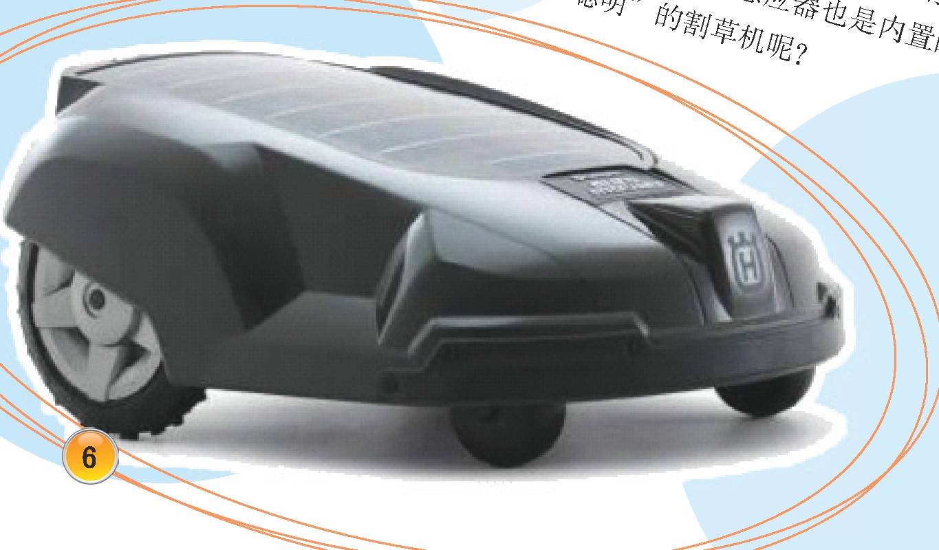 太阳能机器人割草机 这家伙乍看起来像一辆小轿车,其实它是一台割草机啦!这是一款利用太阳能的割草机。它有一块电池,可以储存能量,能持续割半公顷草地。说到安全性,它一旦离地就会自动停止。感应器也是内置的,所以更安全。你们觉不觉得这是一款“聪明”的割草机呢?