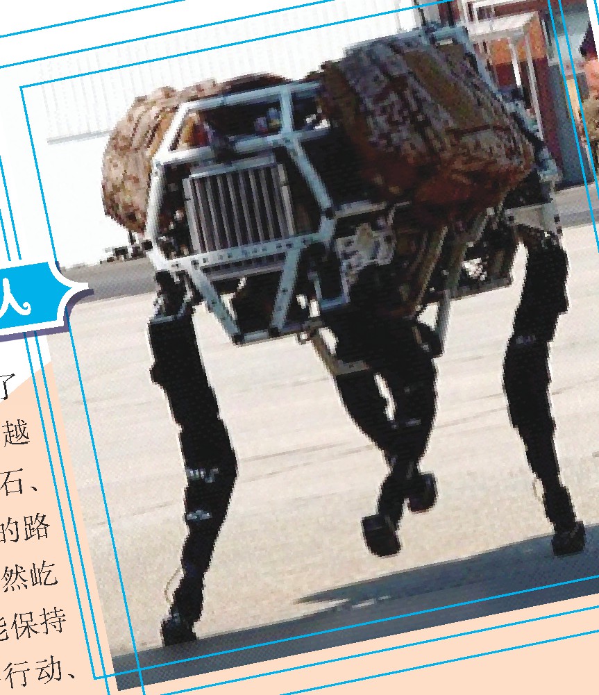 美国一家动力工程公司制作了世上最好的机器人,它们可以穿越地形崎岖的地方,可以在布满乱石、泥泞的山上或有其他任何障碍物的路上行车,即使有人尽力踢它,仍然屹立不倒。这种机器人比人类更能保持平衡,持续行走。它们在军事行动、星球探索等情况下很有用。科学家如果要去外星球探索的话,这样的机器人就可以派上用场啦!