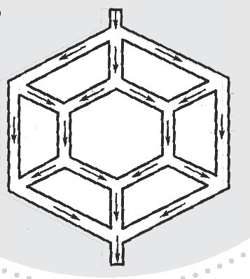 2如图,如果只能沿着箭头所指的方向走,你最多能找出几条从入口到出口的路径?