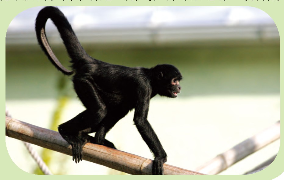 蜘蛛猴,难道它长得既像蜘蛛又像猴?还别说,瘦瘦小小的蜘蛛猴就是因其形体和在树上爬的动作酷似蜘蛛,所以才得到这个名字。