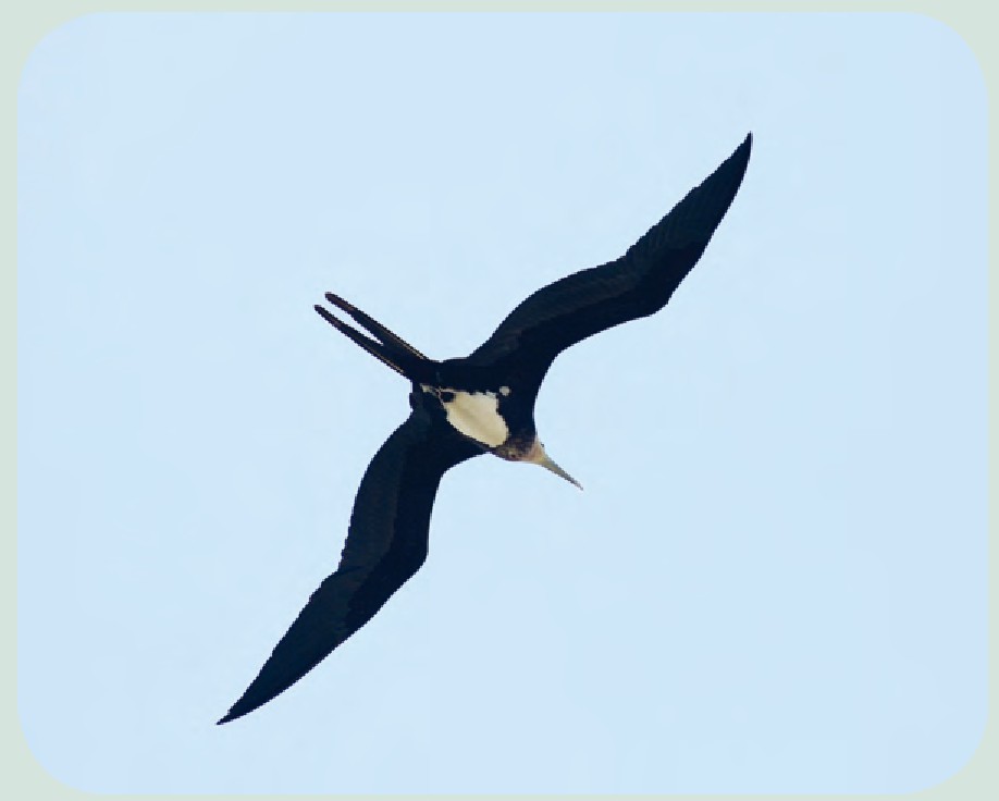 军舰鸟之所以能够完成长距离飞行,秘诀是“乘风而上”。军舰鸟生活在热带地区,这里的空气很容易形成上升气流,这股上升气流就成了它们的动力来源。顺着风,军舰鸟可以爬升到1000米以上,最高纪录甚至达到了4120米,然后再展开翅膀向前滑翔。起点越高,通过滑翔实现的水平移动距离越远,从4000米高空滑下的军舰鸟能够轻松前进60千米。