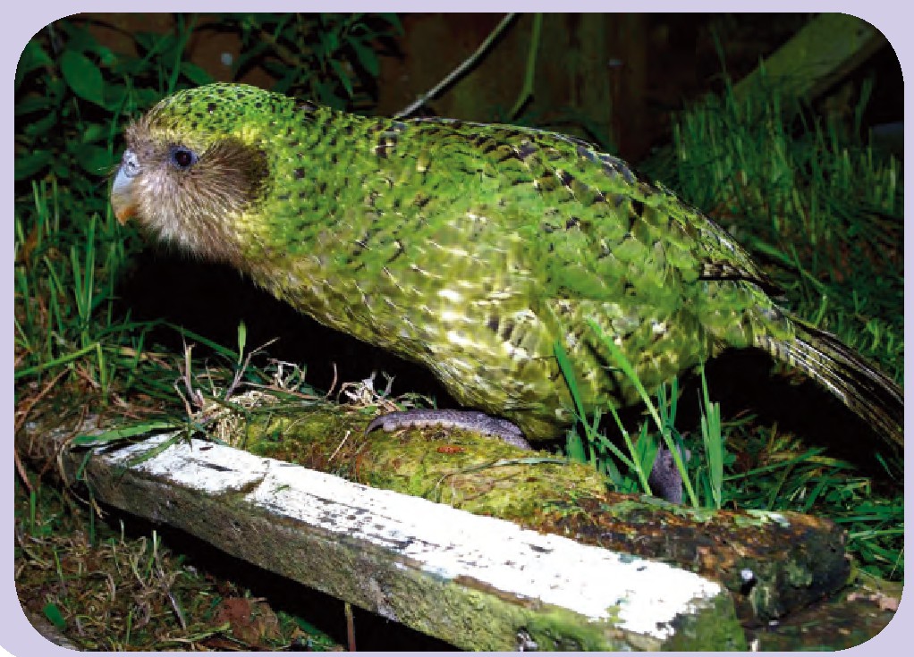 鸮(xiāo)鹦鹉这个名字让很多人不明白,它到底是鸮(猫头鹰)还是鹦鹉?其实,它就是长着猫头鹰脸孔的鹦鹉。