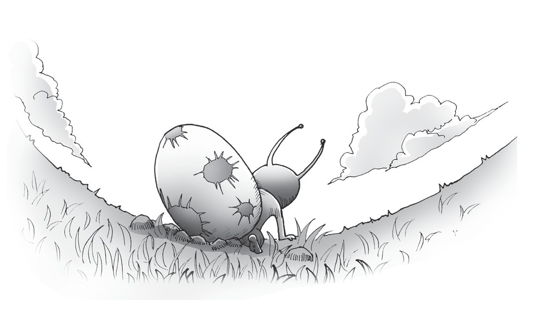 哈奇开始讲故事了,所有人的注意力都集中在听故事上。但没人知道,在草原深处的一个地方,出现了一个焦黑的大坑。一个小小的绿色身影正在大坑的最中心挣扎。这是一个小精灵,他有着圆圆的大脑袋,脑袋上还顶着两根触须。现在他正骂骂咧咧地从一只破烂的蛋形飞船里面爬出来。