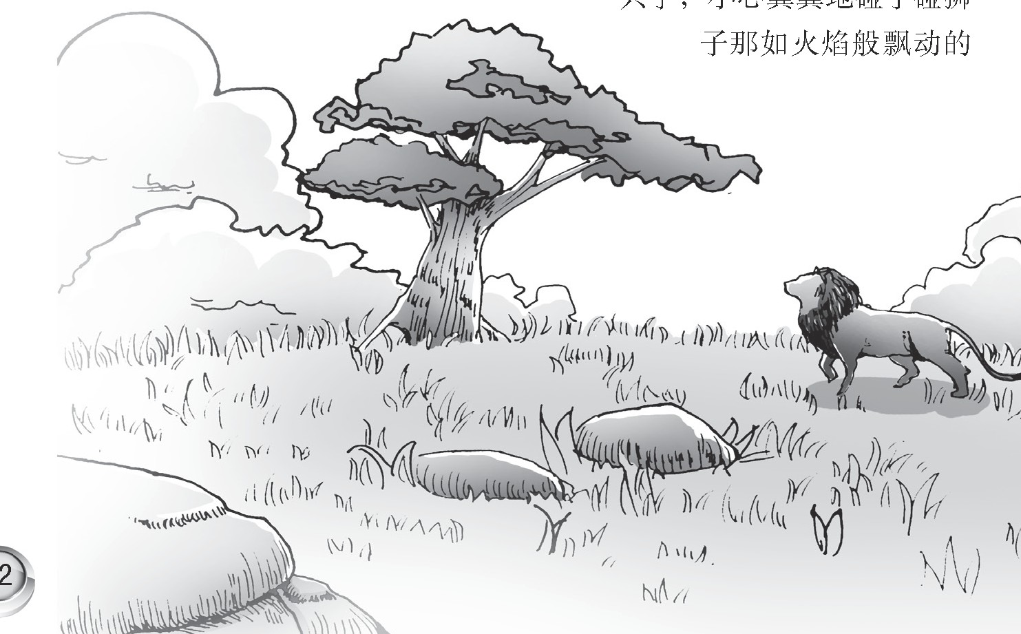 就在这时,狮王猛地睁开了眼睛。它的眼睛好像两团燃烧着的火焰,又仿佛两颗明亮的星星。它看向朵儿藏身的大树,发出一声警告意味很浓的低吼。
