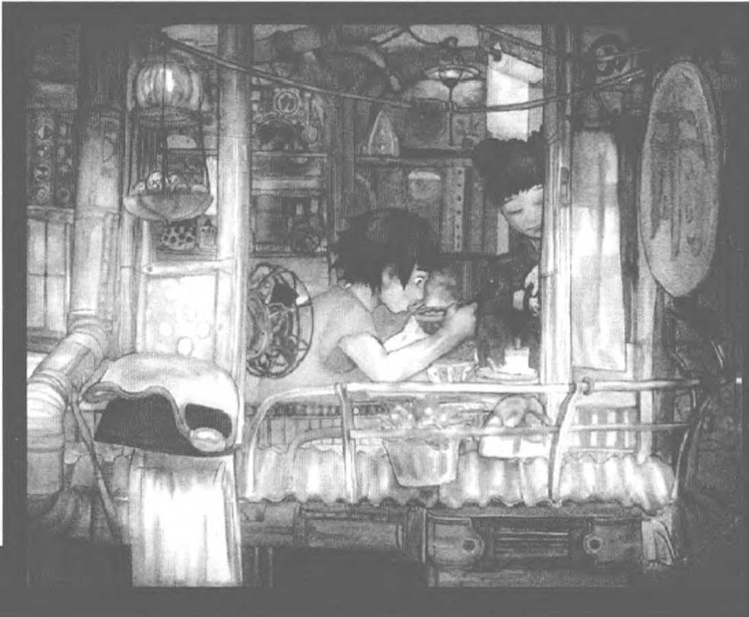 我架着飞行器穿梭在灯火辉煌的城市的街道上,代表着新时代的摩天大楼耸立在两旁。灯光之下机器人往来不绝地搬运着人类的各种生活用品,对于人类来说这是一种下贱的行为,因为人类创造了它们,但我觉得它们可贵——它们是劳动者,正是因为“劳动”,人类才有今天的发展,但今天人类却把“劳动”丢掉了,只顾尽情地享受。人类不可改变的新陈代谢使我在一间餐馆停下。