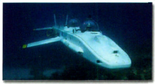 美国人设计的这款新型潜艇以飞行的原理建造,可以推、升和拖拉,让艇中人可以在海浪下方“飞行”。它可以潜入水下300米以上,时速高达11千米,它有数只翼和一支操控杆,像飞机那样带坡度转弯,可以随意转动及依曲线前进。驾驶座有厚厚的透明胶罩保护,让驾驶员可以看到360度的水底景观。新型潜艇下水一次可以行走数小时,驾驶员不必担心疲倦或失压。
