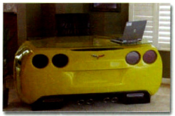 一般的办公桌四平八稳,颜色暗淡,而这款跑车办公桌能让整个办公室都炫丽起来。这张办公桌模仿的是雷弗兰C6的尾部,它不仅有真正跑车的尾灯设计,更有排气管、玻璃顶等窝心的创意,在这张办公桌上工作,一定会让人精神振奋,提高效率。