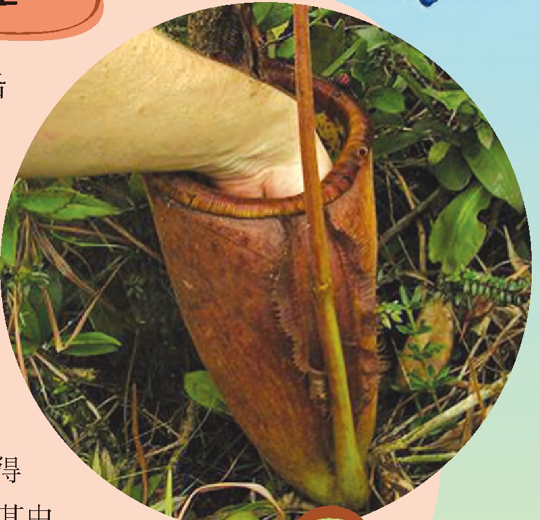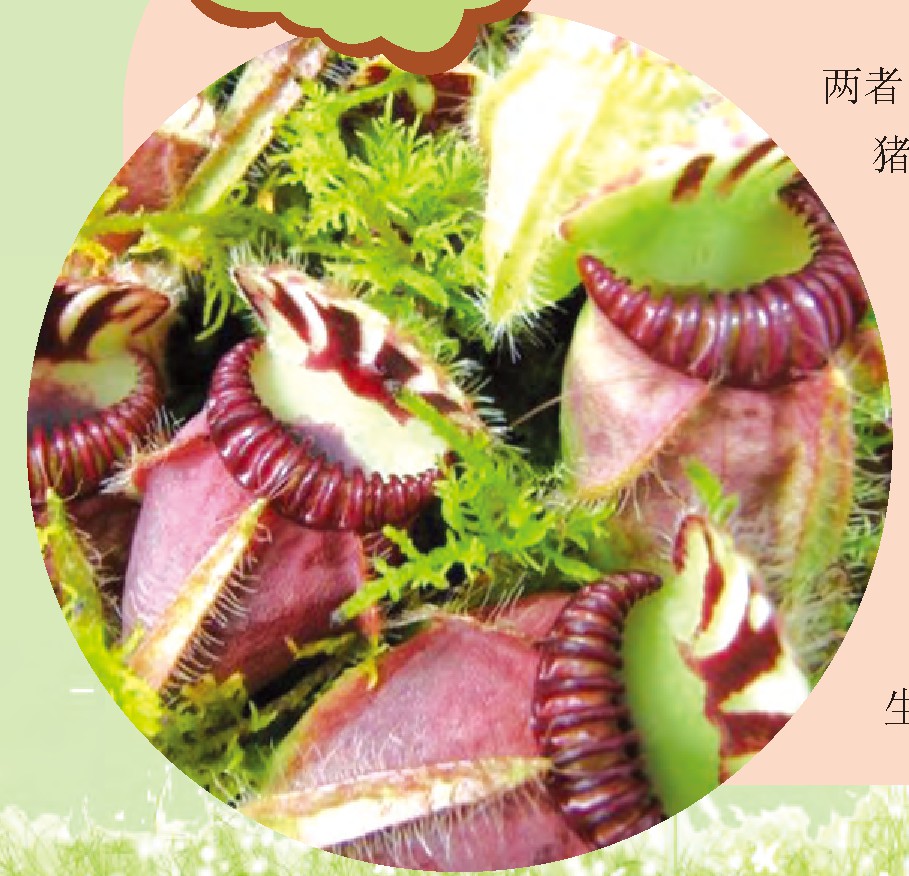 猪笼草是一种热带的藤本植物,攀援于树木或者沿地面而生,最高可长至3米多高。它的叶子中脉延伸成卷须,至顶端膨大成一个巨大的囊状体,这就是它吸取营养的器官——捕虫笼。
