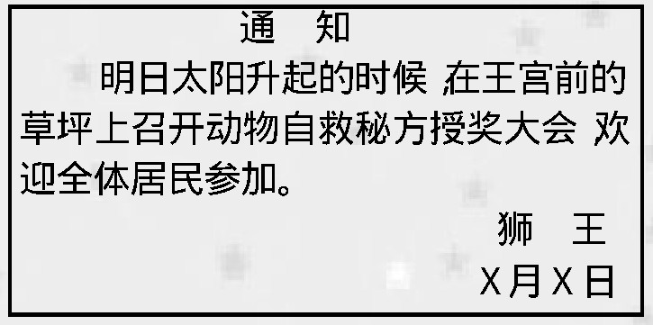 两只猴子又在前次贴布告的树干上贴出一张通知: