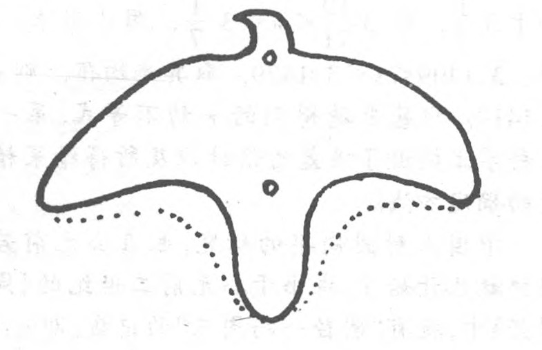 1.扎。按(图1)所示尺寸、角度(竹皮朝前)扎架,两翼竹条端点用线连起来(图1虚线),线走竹皮前经过。