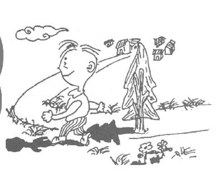 小明星期六下午下课后到外婆家去玩。但是这是他第一次单独去,他不认识路,临走时妈妈告诉他,走出小路碰到一棵小树就往西走,这样很快就能到达外婆家,下面这幅图就是小明走的方向,你说他能走到外婆家吗?