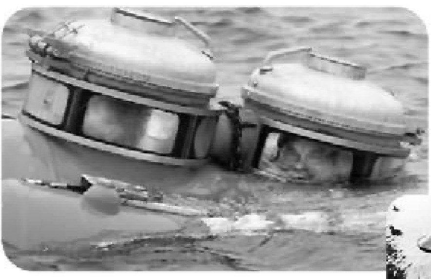 制作方法:用刀片将废旧塑料瓶的瓶底整齐切下待用;在瓶内放一小块橡皮泥,并用橡皮胶布固定,作为压舱物,再在瓶盖上分别钻两个孔,将一长一短的两根塑料套管装入,也用橡皮胶布固定;用橡皮胶布把刚才切下的瓶底固定在原处;最后接上管子。