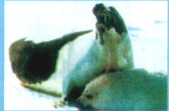 母海豹在死去的小海豹身旁发出凄厉的哀号。