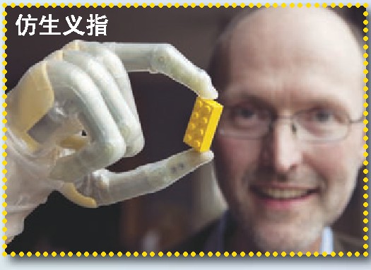 目前,全世界大约有120万人手指不齐全,其中一部分是由天生缺陷所致。有一家智能假肢科技公司开发出可以接受患者大脑指挥的智能义指。患者做出某项决定后,大脑产生的神经信号传递到残指的神经末梢,然后再把信号传递给义指中灵敏的感应器,从而驱动义指中大量的微型液压电机,让义指根据患者的意愿做出各种动作。为了让自己的义指看上去和真指一样,患者还可以选择在义指外部套上逼真的人造塑胶皮肤。