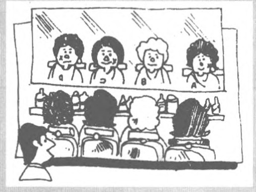 小芳的姐姐正在理发店内理发。她的左脸有伤疤,右耳戴耳环,头发分右边界,你能把她找出来吗?