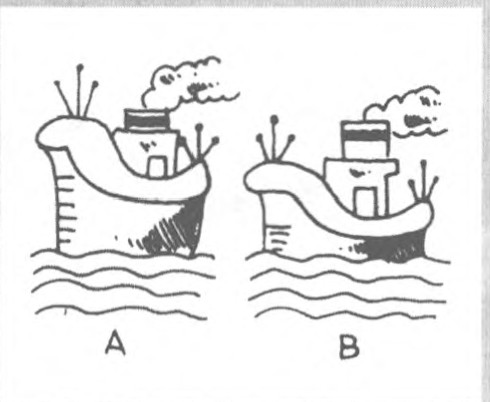相同的货轮装载了同样重的货物,其中哪一艘是在海洋中航行?哪一艘是在江河中航行呢?