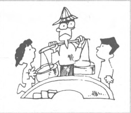 3.两个小孩分别坐在两个空筐里,让挑担的人前后一转,各人就都可以顺利过桥了。
