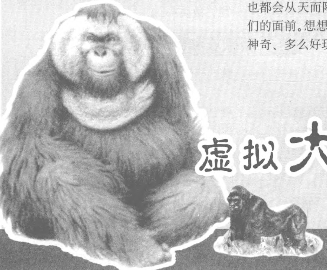 目前,科学家正通过改进电脑编码程序,以求创建一个具有整体性的大型虚拟动物园。如果有一天,这一步真的实现了,那么,不仅是虚拟大猩猩,还有虚拟熊、虚拟大象和虚拟犀牛等各种动物,也都会从天而降,活灵活现地出现在我们的面前。想想看吧,这将会是一件多么神奇、多么好玩的事啊!