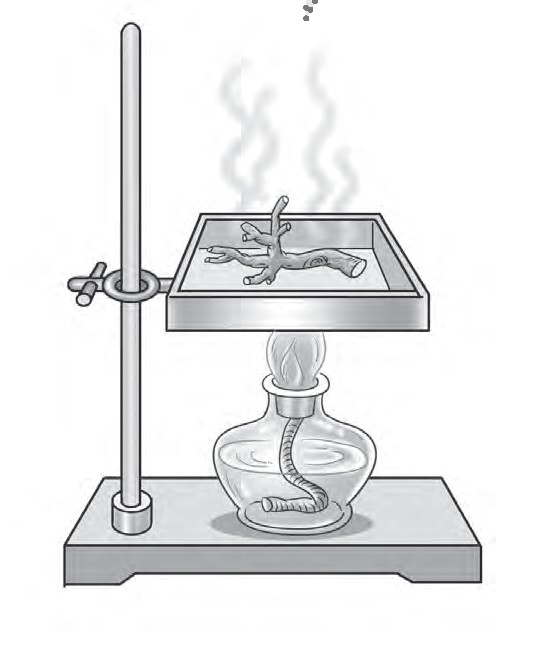 爸爸点燃酒精灯,对着固定在铁架台上的铁盒进行加热。咦,一股白气慢慢上升了,不一会儿,树枝的表面就被白气给包裹住了。片刻后,树枝上好像真的挂满了“雪花”。