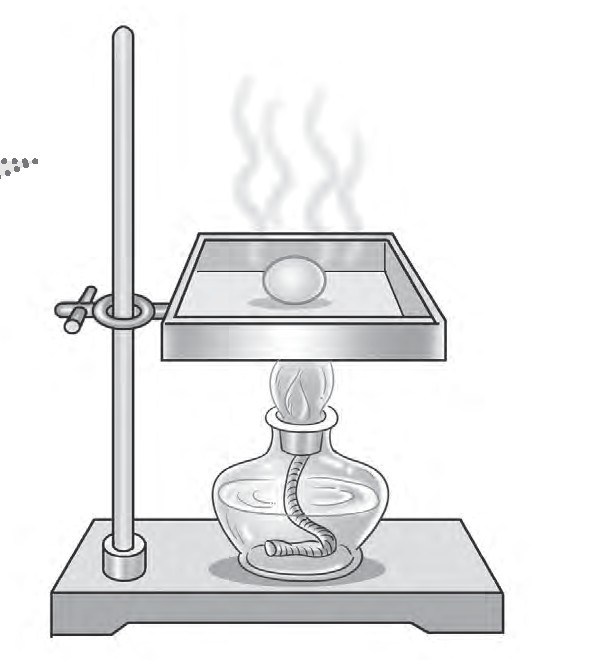 步骤1 将装有樟脑丸的铁盒固定在铁架台上,接着用酒精灯把樟脑丸加热至融化。