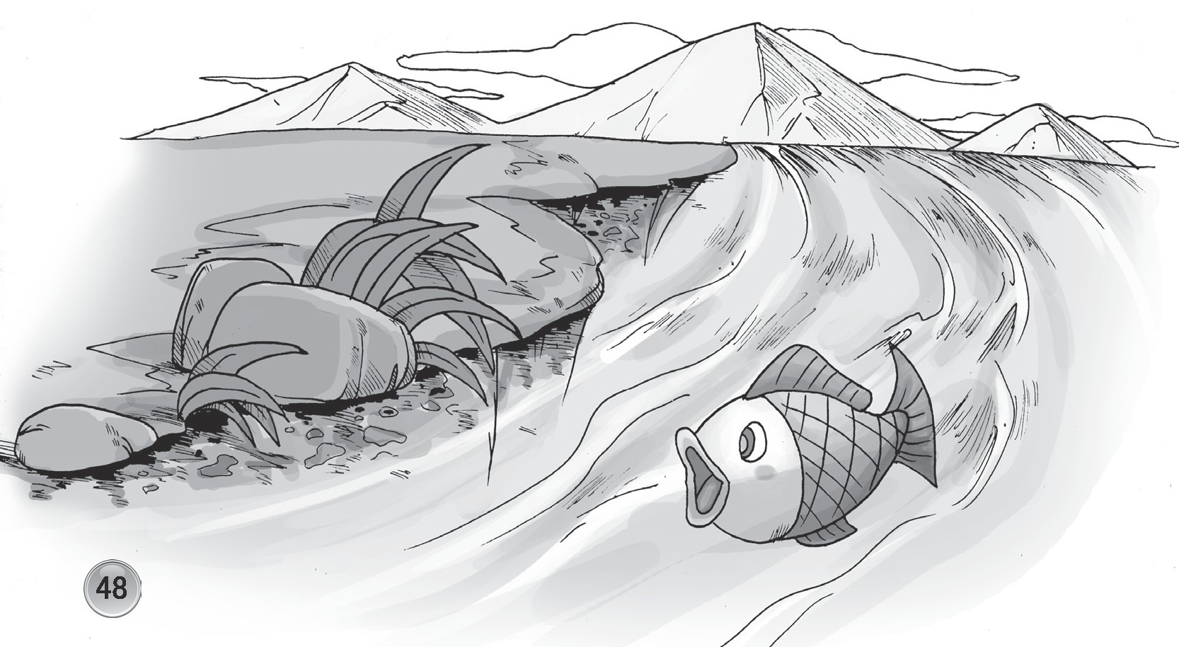 一股奇怪的力量激励着我,我奋力地向前游着。我跳下山涧,滑过小溪,游向江河……我不停地向前游着。我的身上早已伤痕累累,好几次差一点被凶猛的同类吃掉,但我仍努力地向前游着,我知道大海已经离我不远了。