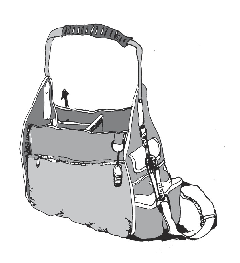 那天,我家的电路出了问题,一位电工师傅来到我家,我见他一边检查线路,一边在工作包中寻找工具,于是我就想,是否能将现行的手套进行放大,发明一种电工手套工具袋。具体构思是将工具袋制成手套模样,隔成几列,这样就可以将起子、钳子、烙铁和电笔分开,防止混装,寻找方便,提高工作效率。当然手套袋还可以制作成时尚挎包及食品分类袋等。