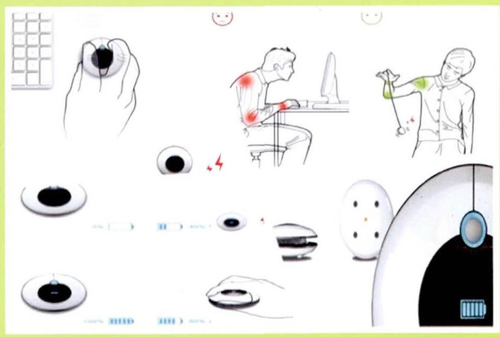 人长时间坐在电脑面前,不仅背部僵硬,手腕也会酸痛。为此,设计师设计了这款溜溜球鼠标,它是一个无线鼠标,电力会消耗得特别快。没电时,你必须像溜溜球一样溜它一会,才能给其补充电力。有了它,你就可劳逸结合了。