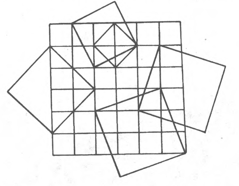白狗与黑猫:围猫的绳子需长些。因狗与猫的边线小方格都为32。而小方格的斜线(对角线)狗是7,猫是8,所以围猫的绳子需长些。