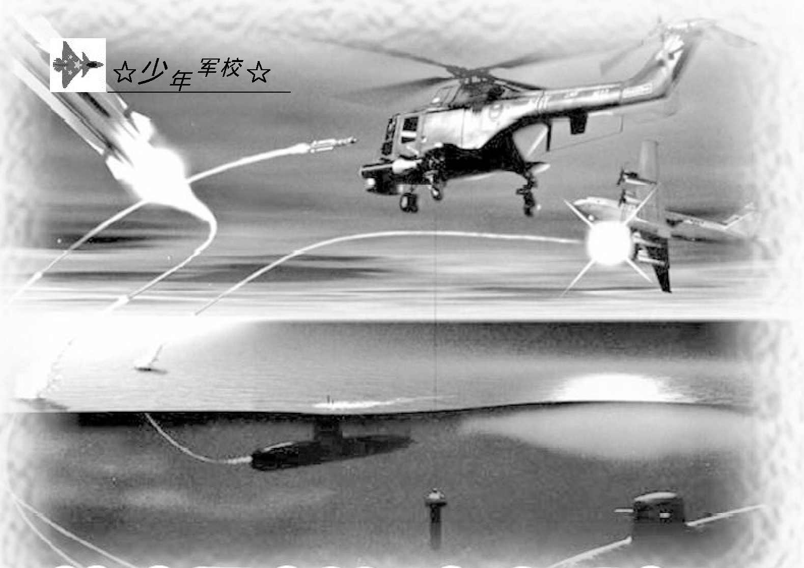 “海神”导弹系统作战过程如下:(1)搜索探测。潜艇探测飞机发动机和旋翼转动发出的声响,通过声音库进行对比,识别来袭目标。(2)发射准备。把目标坐标、发射条件和作战指令输入火控计算机,在显控台屏幕上显示目标航迹,并进行导弹飞行弹道设计。(3)发射导弹。按下导弹发射按钮,启动发射程序,导弹在液压力作用下离开发射箱,助推发动机启动,导弹飞出水面,巡航发动机点火工作。(4)巡航飞行。导弹上升到2 0~6 0米后,弹上红外摄像机开始工作,并向潜艇内操作人员传送所视场景。在捕获目标之前,火控计算机将根据目标坐标变化情况,向导弹发送修正指令。操作手则根据图像发现并确定攻击目标,导弹随即进入目标自动跟踪状态。(5)拦击目标。当导弹接近目标时,进行瞄准点修正,直至导弹与目标交会,引信引爆战斗部杀伤目标。