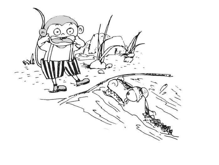 4.(小猴子做鬼脸给鳄鱼看,鳄鱼还是哭个不停。)