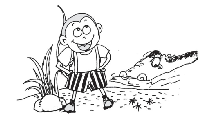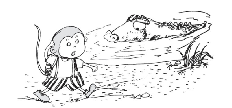 2.(路过鳄鱼的池塘时,看见鳄鱼在伤心地哭泣,小猴子很疑惑。)