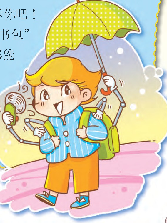 我想为同学们发明一个“方便式小书包”。春天,当你到外面玩忘记带雨伞时,它会立刻伸出一只“手”打着一把雨伞,让你不会成为“落汤鸡”;夏天,当你汗流浃背时,它会伸出一只“手”拿着一台小电风扇对着你吹,让你及时感受凉风,不用变成烤肉;冬天,当你感到寒冷时,它就会拿出一件棉袄让你穿上,这样你就不用变成“冰雕”了。你也肯定会怀疑这个“方便式小书包”会不会很重,那么我告诉你吧!它一点也不重,轻极了,只有一百克。“方便式小书包”能防火、防水、防雷、防电,你想要它做什么它都能感应得到,它就像你肚子里面的蛔虫一样。你有心事时,它还会跟你说话开导你……怎么样?我的“方便式小书包”很厉害吧!