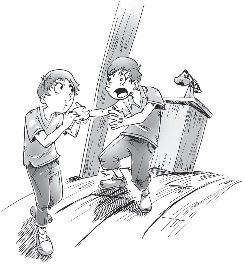 回到家,钟小小发现桌上放着一架天平,旁边还有糕点,准是妈妈工作没做完拿回了家。他想到在学校里发生的事,气不打一处来,拿起天平就要丢掉。