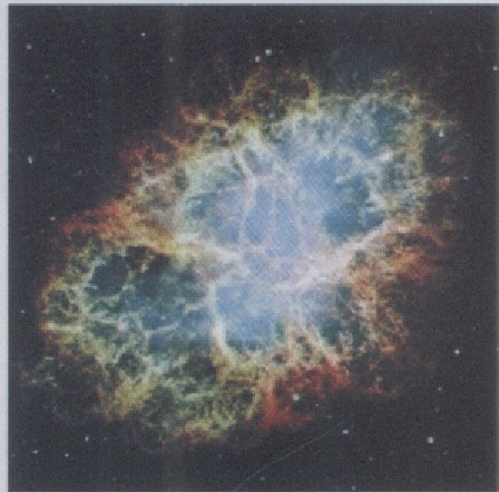 螃蟹星云是18世纪法国天文学家查尔斯·梅塞尔列出的第一个模糊星体,梅塞尔是18世纪的“彗星猎人”,在天文观测中他列出了一些容易与彗星相混淆的星体。早在11世纪,亚洲天文学家就观测记录了螃蟹星云的存在,它在太空中产生了巨大的爆炸。虽然距离地球6 500光年,但这颗令人眼眩的超新星爆炸释放出强度的光亮,使人们连续数个星期在白天都可以观测到它的存在,在夜晚甚至两年内部能观测到。这个气体云目前被称为超新星残骸,现在它仍在膨胀,不断地向太空释放射电波。