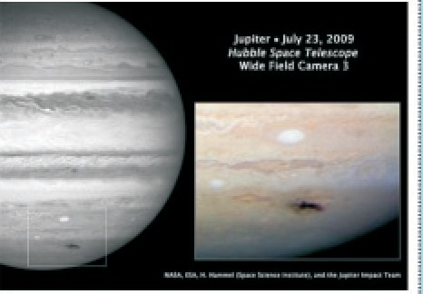 2009年7月中旬,澳大利亚业余天文学家安东尼·韦斯利在自家后花园观测发现木星南极附近出现一个暗色斑点。韦斯利经过进一步的观测,证实这个暗色斑点是木星与一颗彗星碰撞形成的。随后天文学家使用哈勃望远镜三号广角相机拍摄到了这一罕见景象,证实暗色斑点是彗星碰撞木星飞溅残骸形成的涡流。
