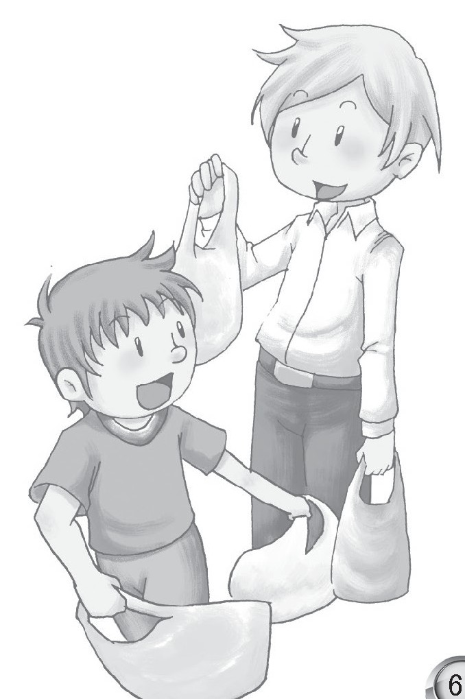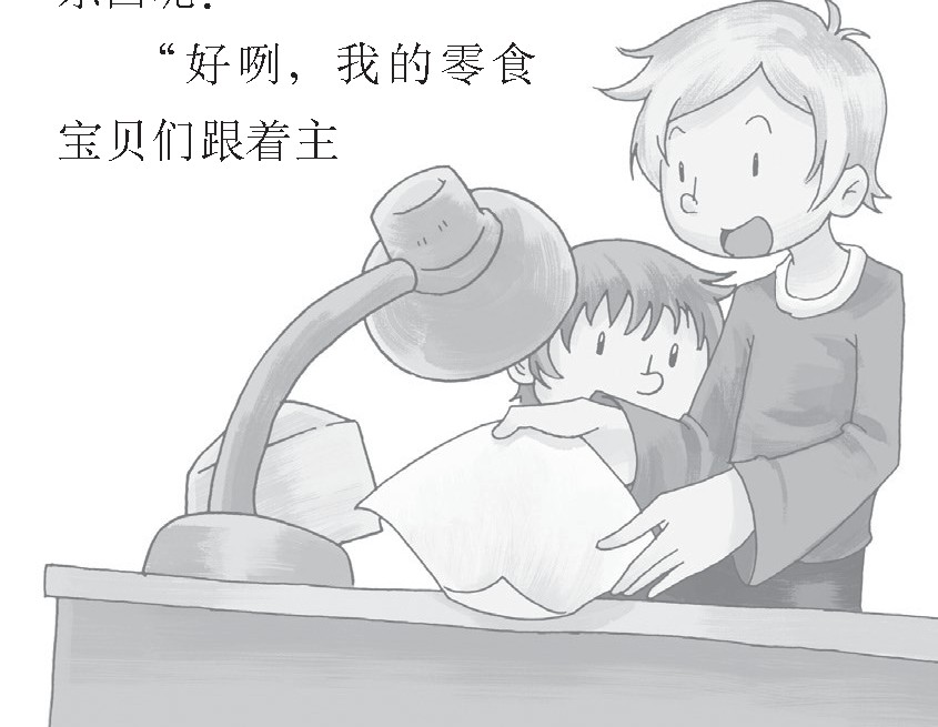 “来啦!”哥哥的喊声立刻让小豆丁兴奋不已,“哈哈,肯定在超市买了好多零食给我,巧克力、薯条、水果糖……我来啦!”小豆丁打开门一阵风似的跑出去,接过哥哥手中的购物袋。
