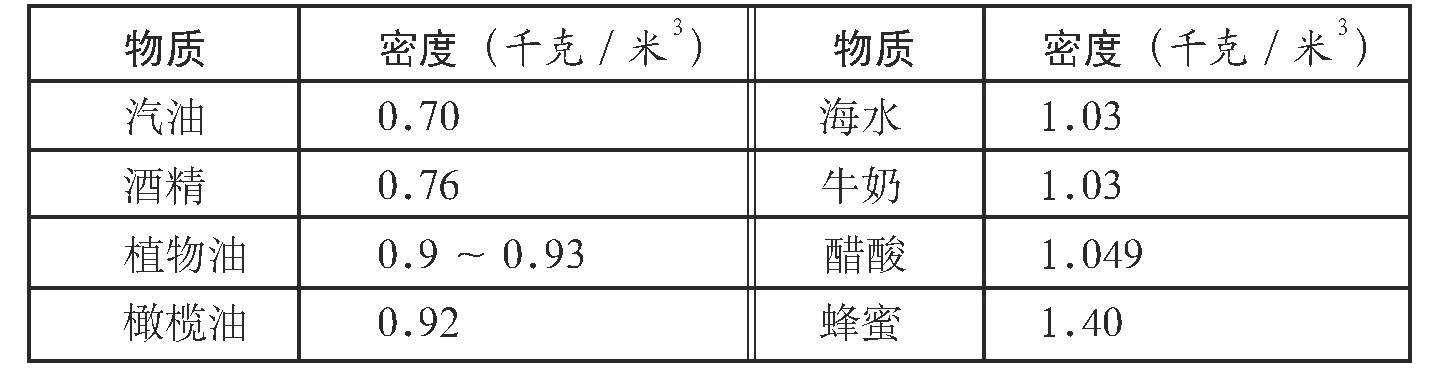 常用液体密度表(常温下)