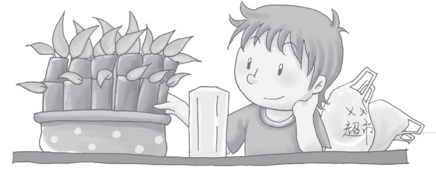 星期六,一大早妈妈就带着哥哥去超市购物了,没来得及起床的小豆丁只得一个人在客厅里无聊地摆弄一节一节的富贵竹。这时,他突然听到门外哥哥的叫喊声:“小豆丁,下来帮忙提东西。”