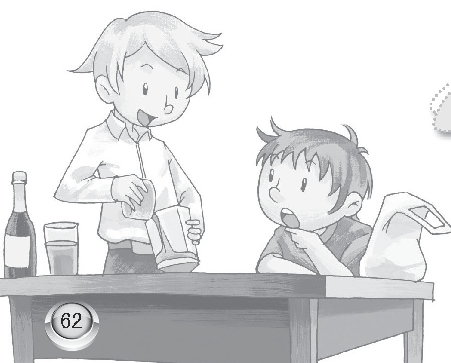 不一会儿,餐桌上就摆满了各式各样的液体,有橄榄油、蜂蜜、醋、牛奶、洗涤剂……接着,哥哥还从厨房里面拿了一个透明的大玻璃杯和一壶凉开水。