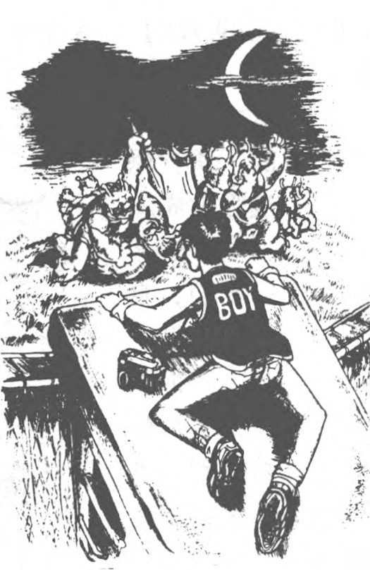 “你准是个贼!”马哈说,(这会儿他才发现阿B跟别的天霸星人不同——不是那种口香糖似的软东西)“你得对我说实话!”