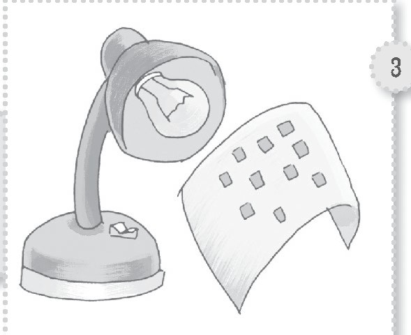 步骤3将写好字的纸放在台灯下烘烤加热,直到文字慢慢显现。