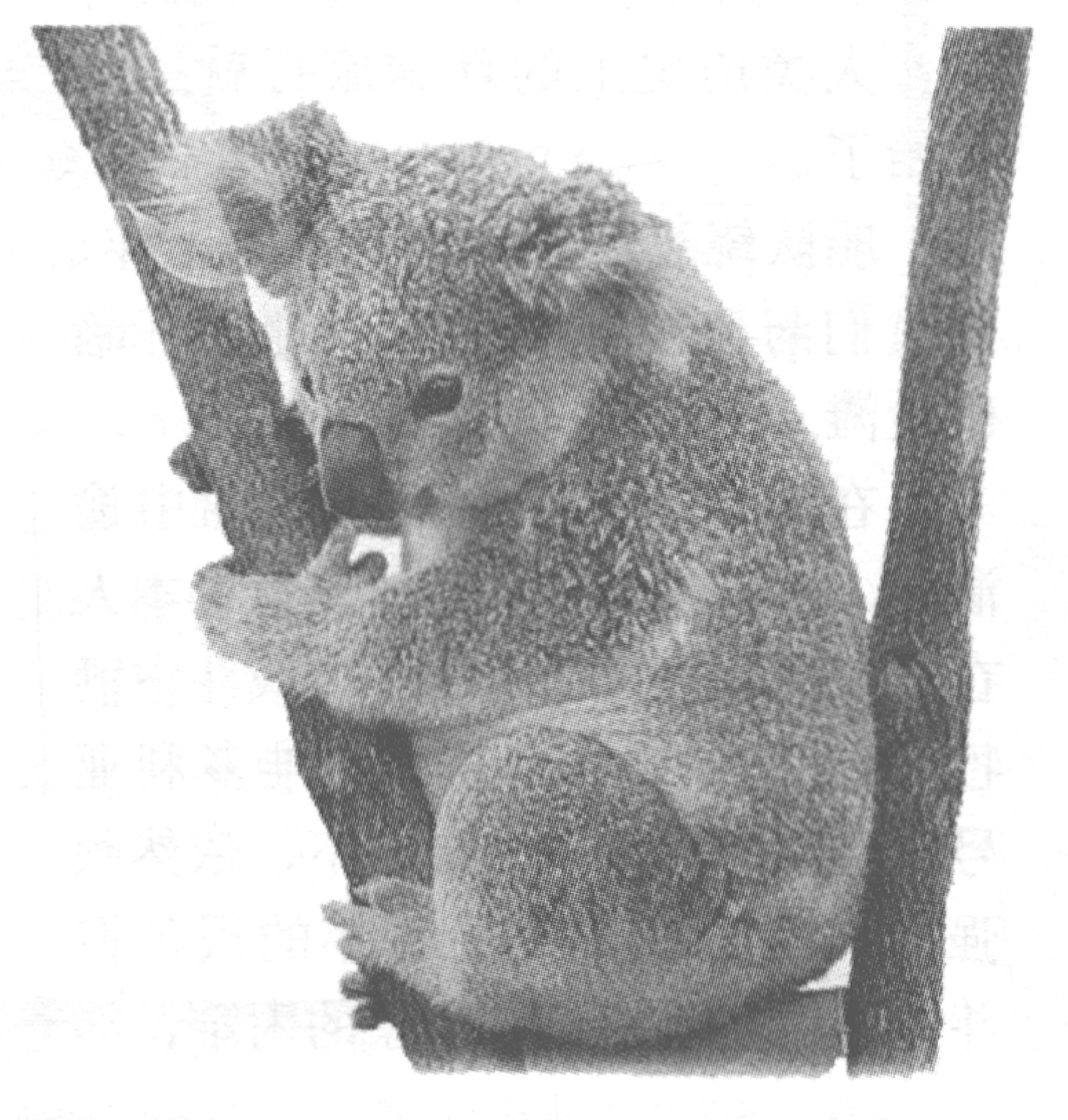树袋熊所食用的桉树叶子营养极差,几乎不含糖和脂肪,蛋白质也是微乎其微,因此树袋熊的体内根本没有脂肪,常常会营养不良。但是这种桉树叶中含有一些芳香类物质,加之树袋熊根本不喝水,因此它们的身上总散发着一种馥郁清香的桉叶香味。它们的皮毛不会生寄生虫,显得干净美丽,因此特别为人们所喜爱,同时也给树袋熊带来了严重的灾难。一些人为了获得珍贵的毛皮,曾大量捕杀树袋熊,一度濒临灭绝。现在,澳大利亚政府采取了许多措施,保护这种可爱的动物。