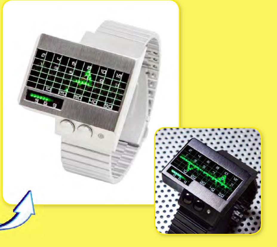 这款手表以心电图的形式显示时间,水平线以上指示的是小时,水平线以下则是分钟。按住切换按钮几秒钟,可以在正常显示与节电显示两种模式间相互转换。这款手表可以通过USB接口充电,在电池电量低时,还可以自动转换成“省电模式”。